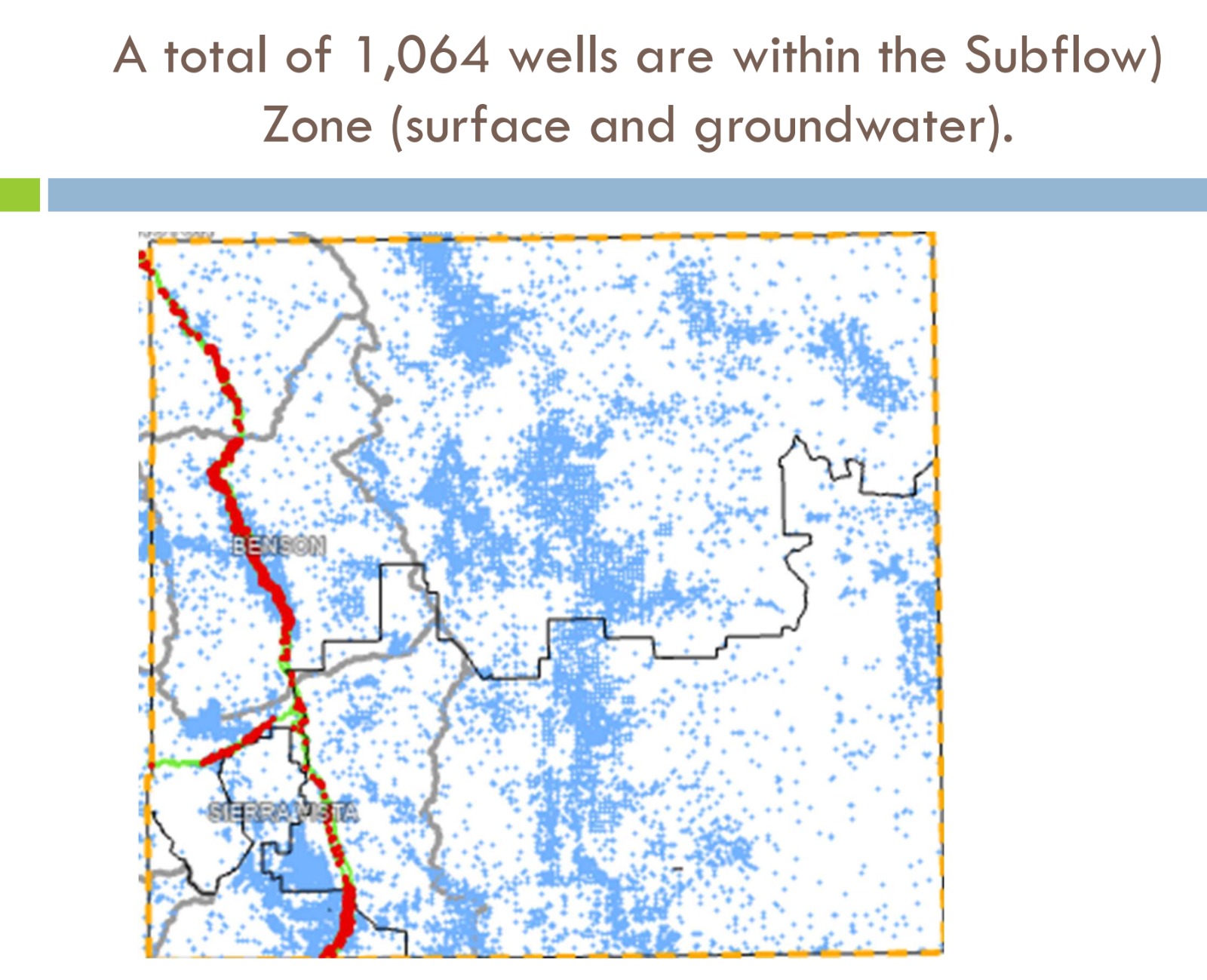 Over 1,000 private wells (families and ranches) lie along the subflow of the San Pedro River.
